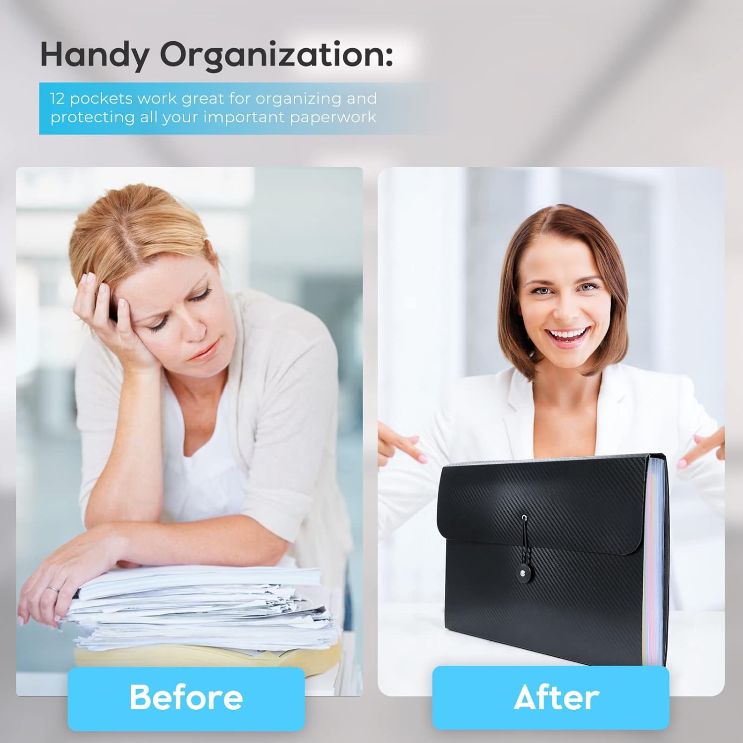 • 【LARGE CAPACITY】With 13 individual pockets and a maximum capacity of 350 sheets of paper, our paper organizer folder is perfect for keeping all your important documents organized and easily accessible.