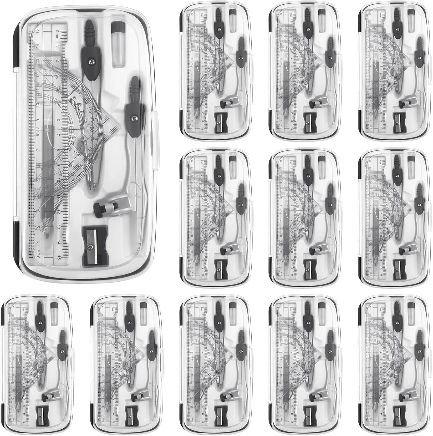 • Geometry Kit Set: you will receive 12 geometry sets, each geometry set includes 2 pcs compass, 2 pcs triangles rulers, 1 pcs straight ruler, 1 pcs protractor, 1 pcs pencil for compass, 1 pcs pencil lead refills, 1 pcs eraser, 1 pcs pencil sharpener, 10 pcs totally; Sufficient quantity, enough for your daily replacement