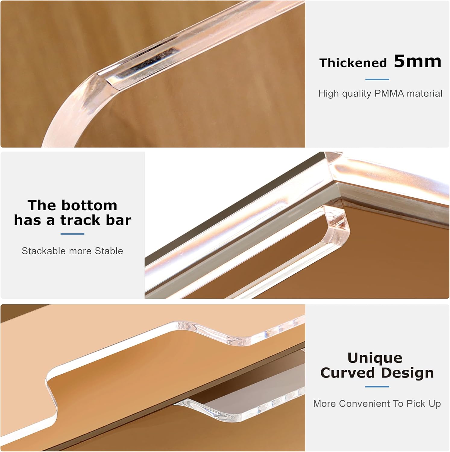 • 【Enlarged Acrylic desk organizer Tray】: 2 Pack, Stake any layer together in a second, Great for holding Letter/8-1/2 x 11 size paper, folders, stationary, desk accessories.