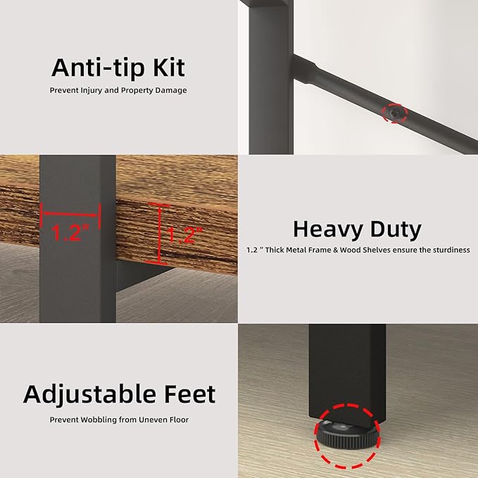 • 【Anti-tip Kits & Easy Assembly 】:Please remember to install the anti-tip kits on the wall for better stability and less unexpected injuries. With smart design and all tools included, you never get stuck with the hard assembly jobs for the rustic brown bookcases and book shelves 5 shelf.