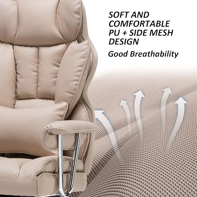 Efomao Big and Tall Office Chair 400lbs – PU Leather Executive Office Chair with Lumbar Support & Leg Rest, Heavy-Duty Computer Chair for Home Office, Dark Beige