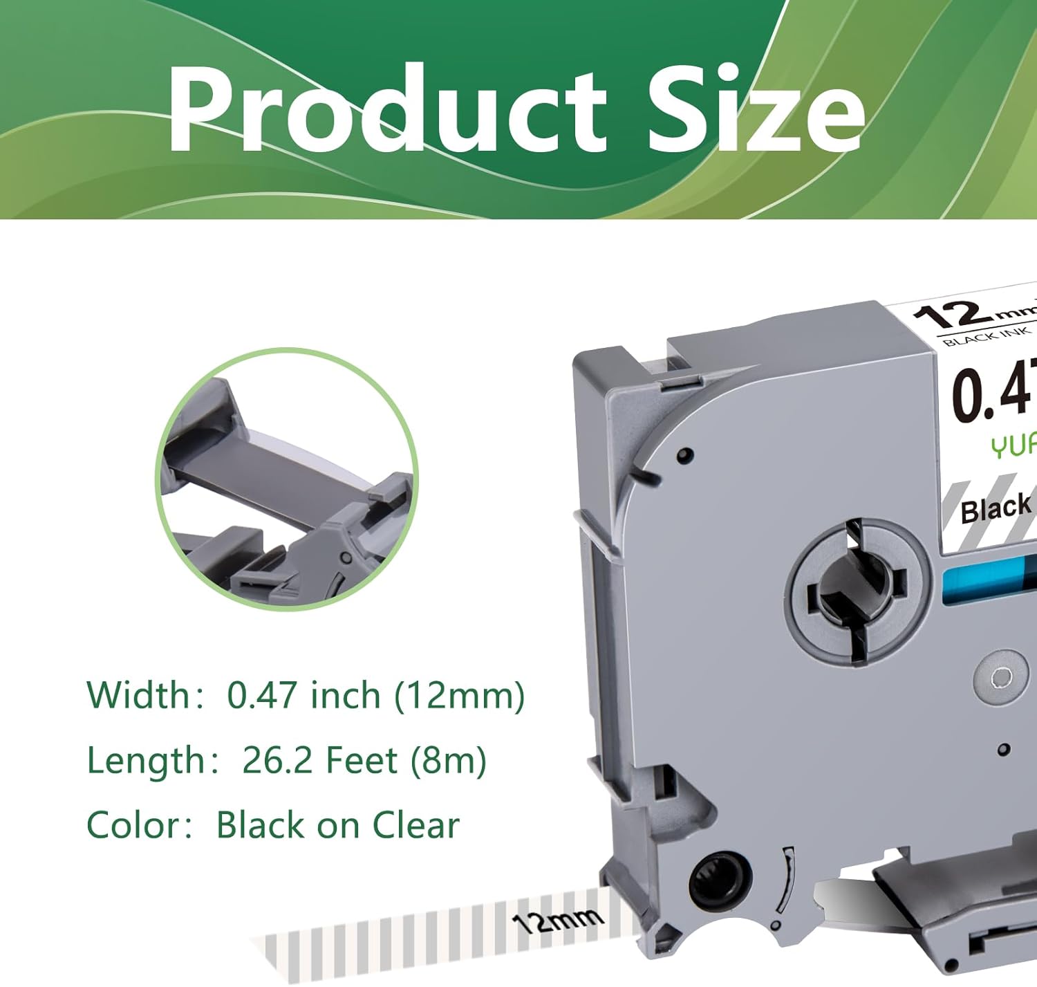• Color: Tze-131 black on clear label tape. Width: 1/2 inch (12mm), Length: 26.2 feet (8m) for each laminated label clear tape
