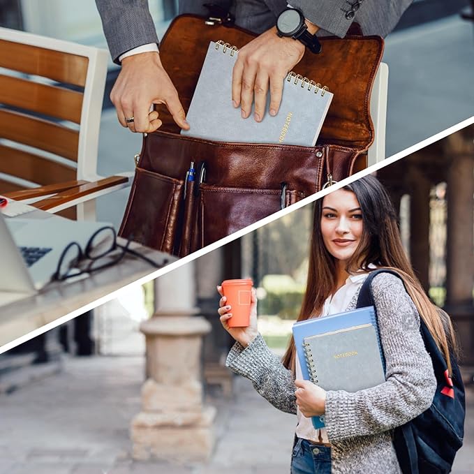• 【Hardcover Spiral Notebook】: Can be used as a business notebook.With sturdy double spiral binding, it can be folded freely 360° without crease, also convenient for you to tear the pages. Also includes 160 pages of high quality interior paper, scratch pad, and line spacing of about 7mm, which meets most writing habits.