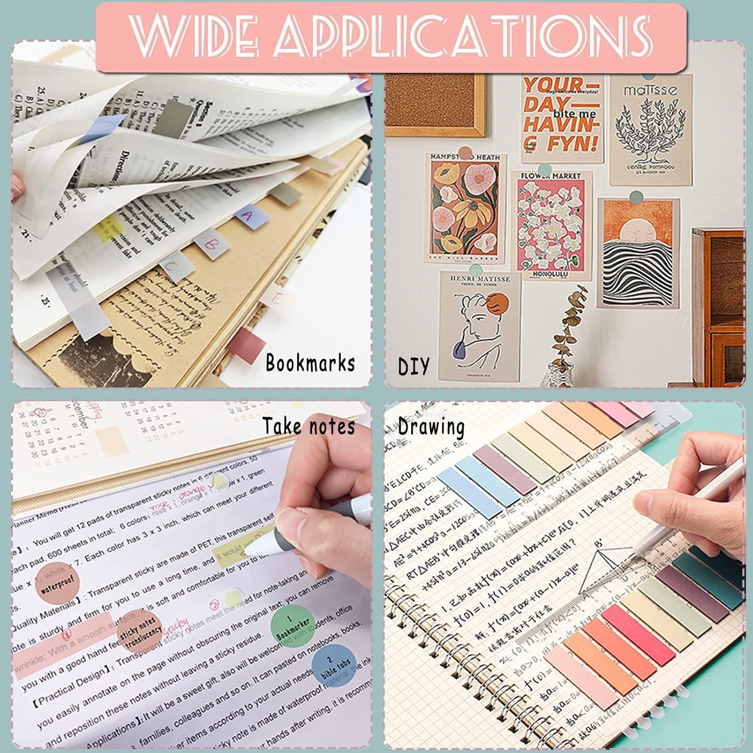 • 【Translucent Sticky Notes】:Potanro sticky tabs made of premium PET material, transparent and waterproof.These book tabs are writable and smooth writing, you can use it to write or marked.