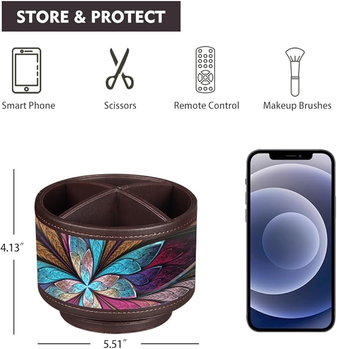 Rotating Pen Holder for Desk, Leather Pencil Pen Organizer Remote Control Holder Table Desktop Nightstand Organizer Caddy Storage, Office Desk Organizers And Accessories 5.5x5.5x4.0 Inch