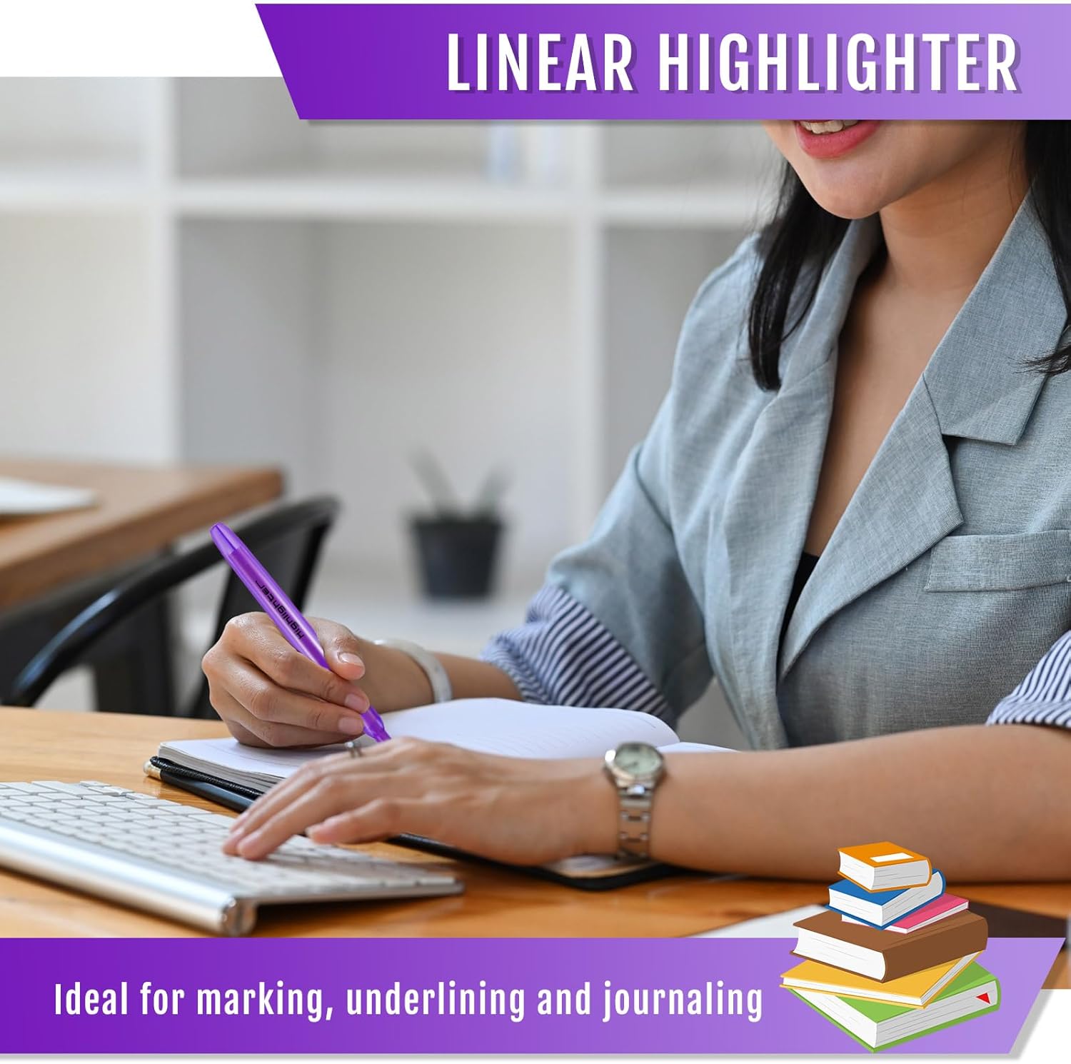 • Package Includes: you will receive 60 purple cute highlighters, enough number of highlighters to meet your daily use and replacement needs, very bright purple can better help you mark key sentences, highlighting, so you can quickly find the key sentences and key vocabulary when reading