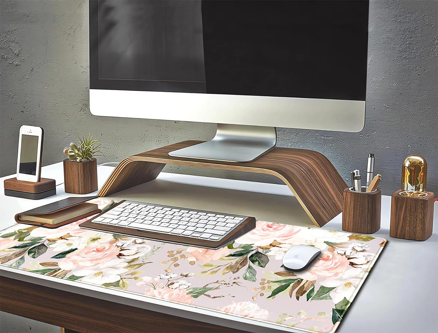 • 【Ultra Large Extended Size 】The flowers desk mats size of 31.5x11.8x0.12 inch will fit your desktop perfect, can put your mouse, gaming keyboard and other desk items. Add color, style and comfort into your workspace.