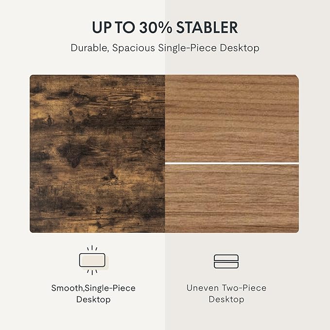 • 1" THICK ONE-PIECE DESKTOP:Experience the elegance of a completely smooth, seamless desktop surface. This design not only enhances the aesthetic but also ensures a sturdier and more stable structure compared to spliced tabletops.