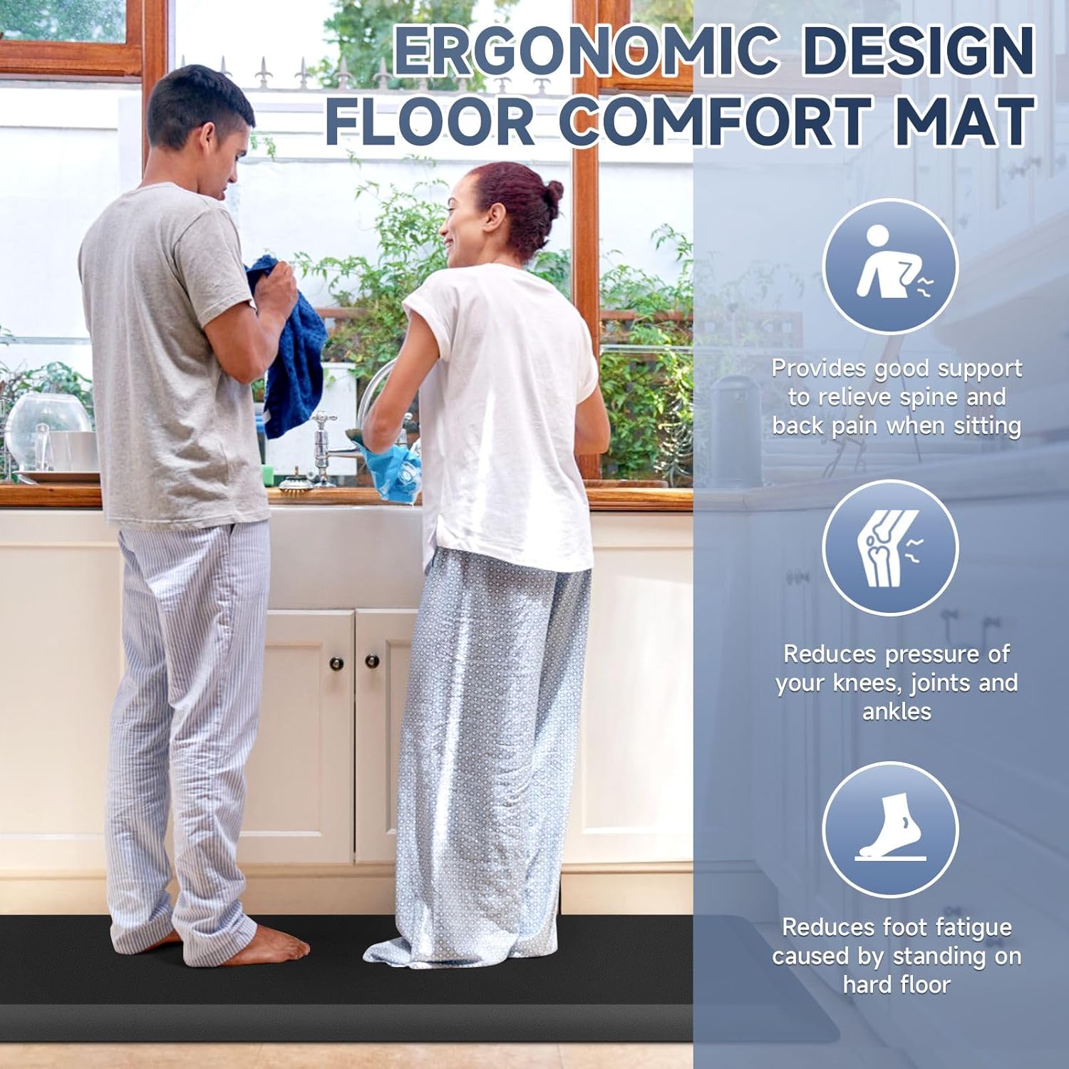 4/5 Inch Thick Kitchen Mat Anti Fatigue Mat Kitchen Rugs Kitchen Decor Non-Slip, Stain Resistant, Waterproof Kitchen Mats Desk Mat for Kitchen, Office, Workshop, Black, 17'' x 60''