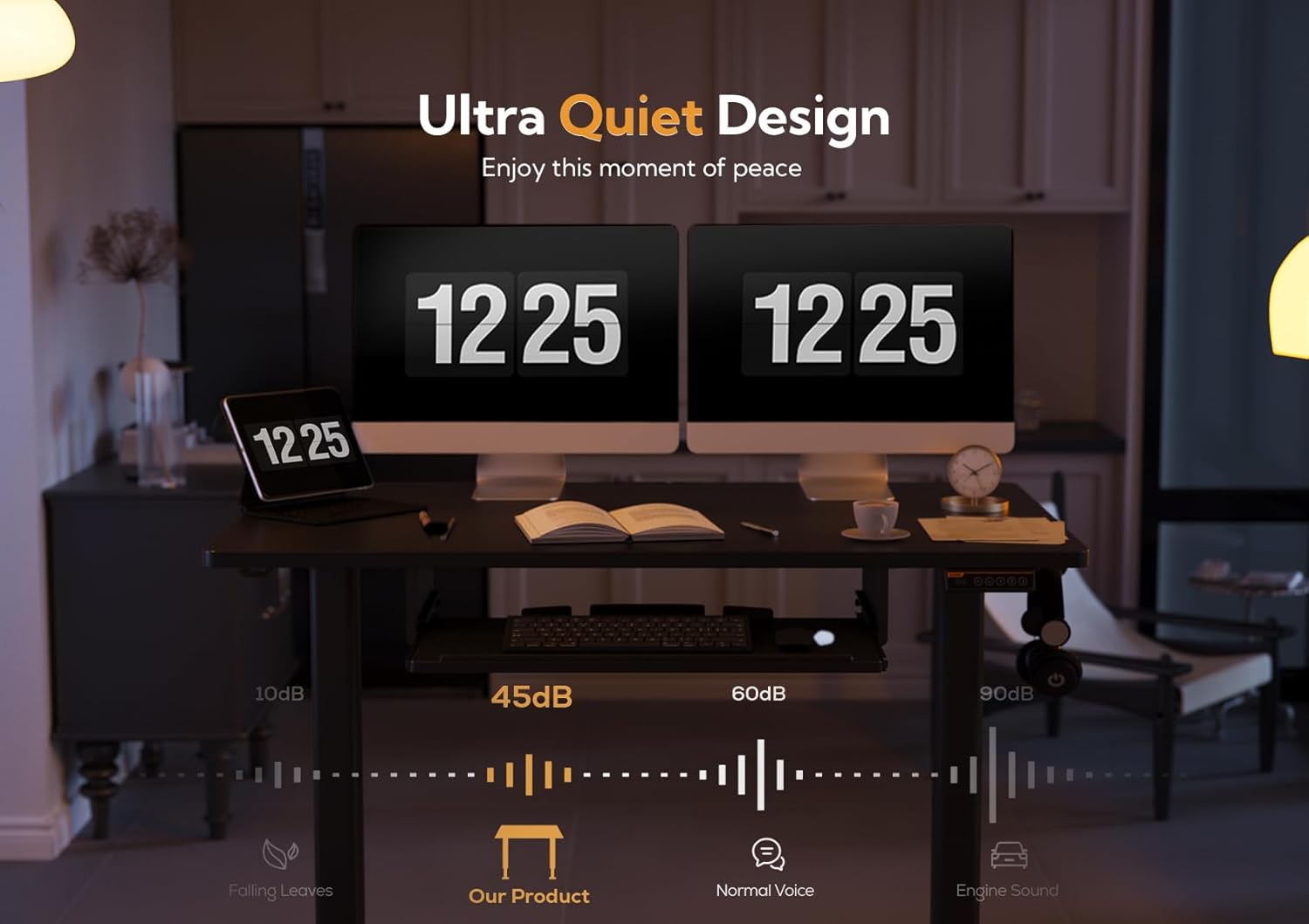 • Ultra-Quiet and Powerful Motor: Claiks custom-designed motors provide robust power for the height-adjustable standing desks. With noise levels as low as 45 decibels, you can enjoy smooth and quiet adjustments, enhancing your workspace without any disruptions.