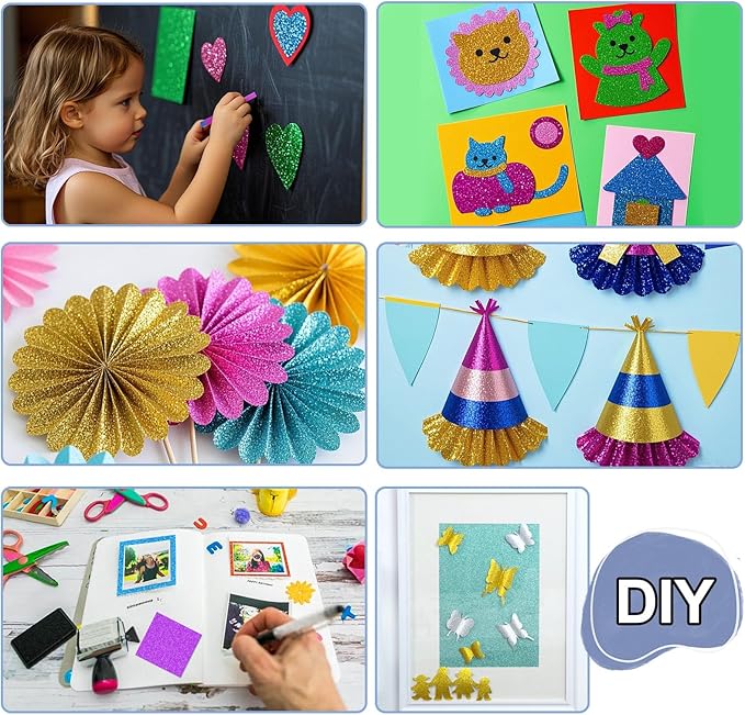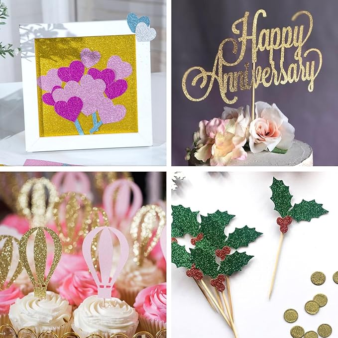 • Perfect for Arts and Crafts Projects - The Glitter for crafts is covered with brightly colored glitter that shimmers and glitters, making it great for cupcake toppers, gorgeous greeting cards, scrapbooking, birthday banners, gift wrapping for Mother's Day cards, Valentine's Day cards, etc
