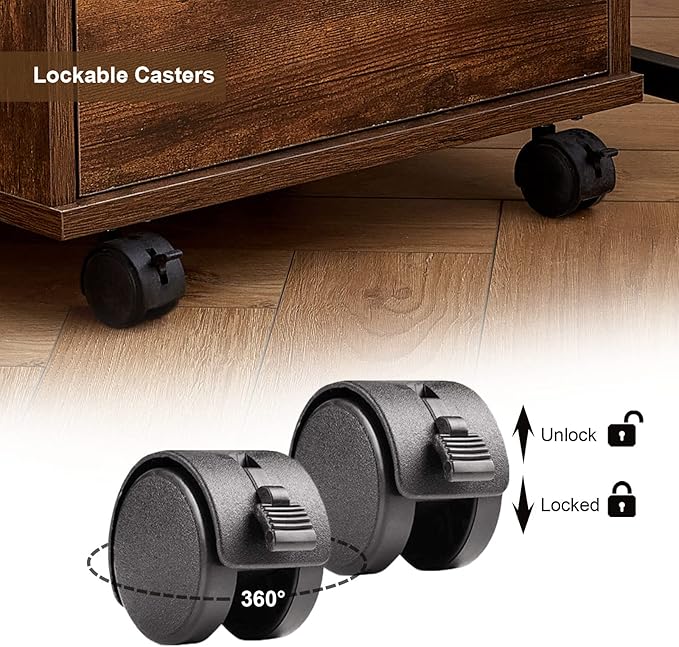 • Effortlessly Mobile with Locking Casters: Features four 360° swivel wheels for easy movement anywhere. The two front lockable casters keep the cabinet firmly in place when stationary, preventing unwanted rolling.