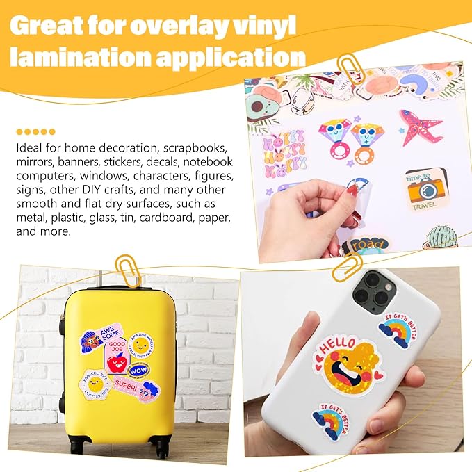 • Water-Resistant & Long-Lasting Protection - Our self adhesive laminating sheets, made from premium clear vinyl, are durable and waterproof sticker paper friendly. Great for use with self adhesive vinyl laminating sheets, these overlays provide protection against smudging and water damage, transforming your designs into waterproof stickers and waterproof sticker vinyl.