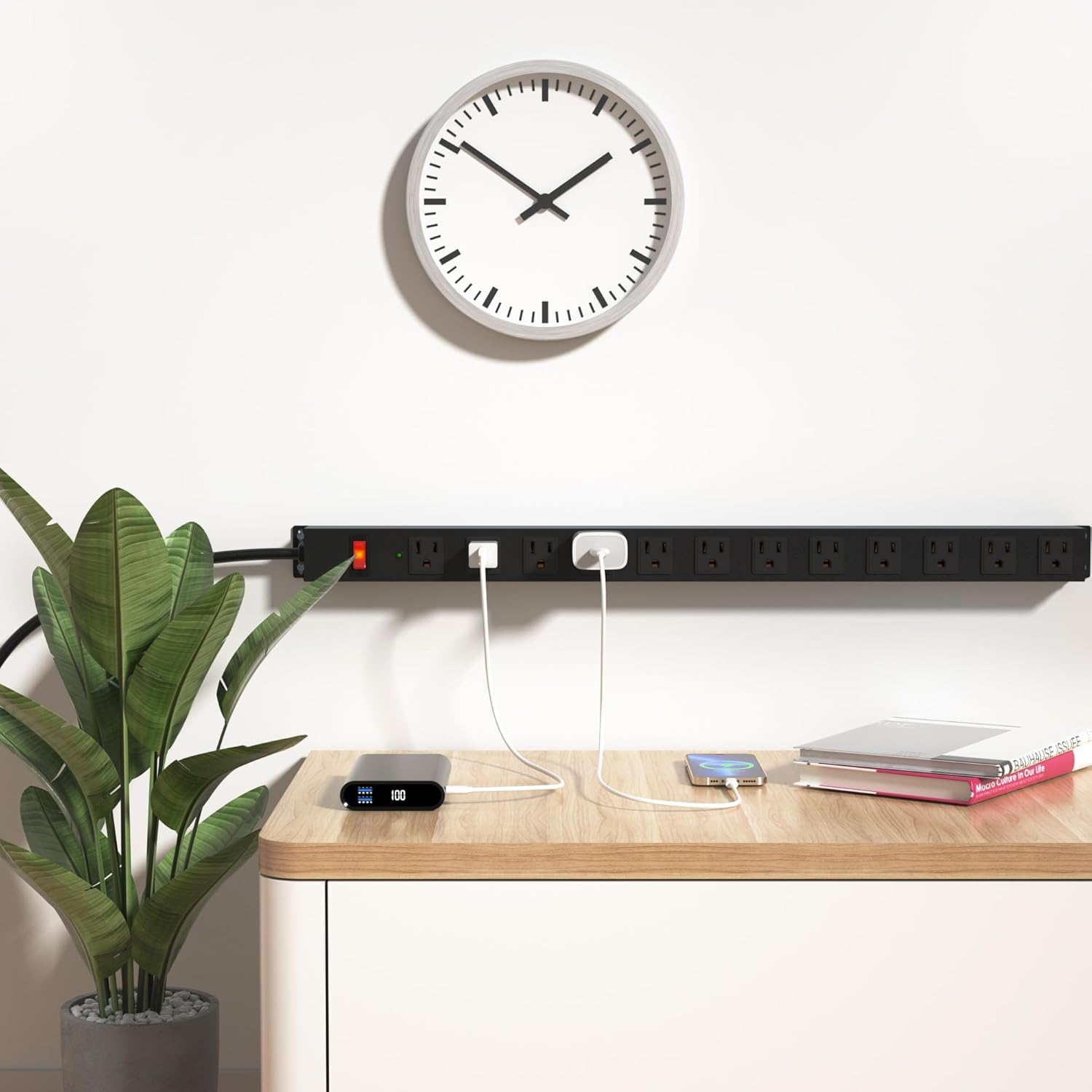 • 【 CONVENIENT OPTIONS 】12 wide spaced (1.69 inches) AC outlets, useful in the routing of power for the various components and organize the power cord. 6 FT extension cord provides to ability to reach distant outlets socket hole.