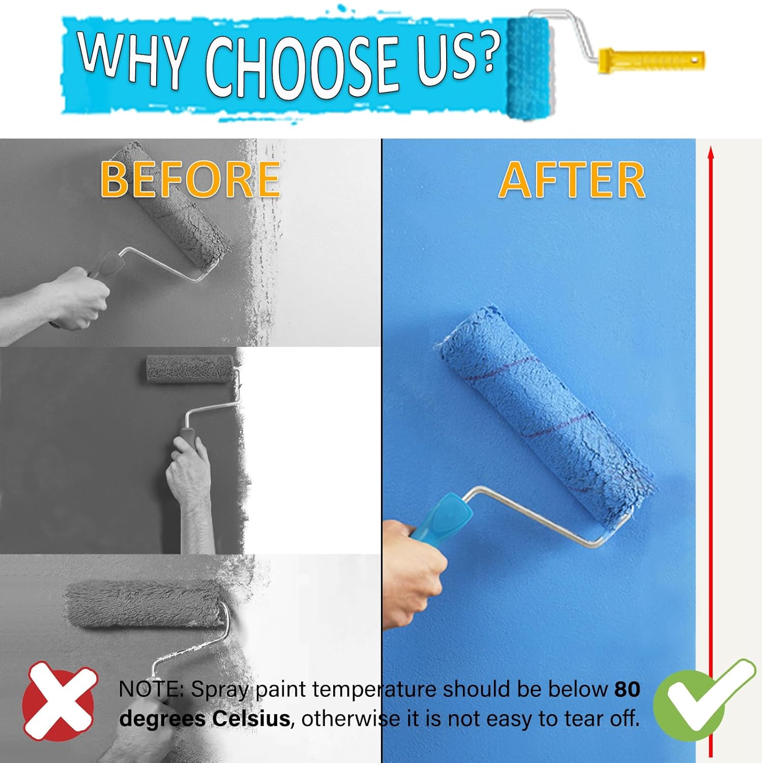 • Easy to Use -- Apply the blue paint tape on the surface and press it firmly at the same time. Before painting, let the blue paper tape fix for 30 to 60 minutes. When the paint is dry enough to touch, slowly lift the wall safe tape and take it out at a 45 degree angle. In order to obtain a good paint effect, please ensure that the water, oil and dust on the surface are cleaned before use, so that the painting tape can be pasted correctly.