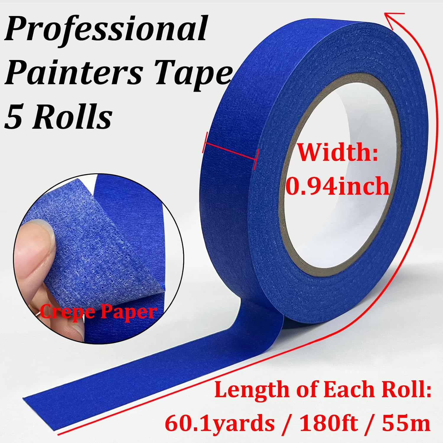 • Package Included -- You will get 5 rolls of painters tape. The painter tape is also named as watercolor tape, paper tape, mask tape for master, craft adhesive tape, art tape, drafting tape, painter tape for painting. NOT suitable for high-temperature painting, baking, electronic components, automotive spraying and other places where high temperatures are generated. Size: 0.94 inch wide, 60.1 yards / 180.5 ft long, total 300.5 yards / 902.5 ft.
