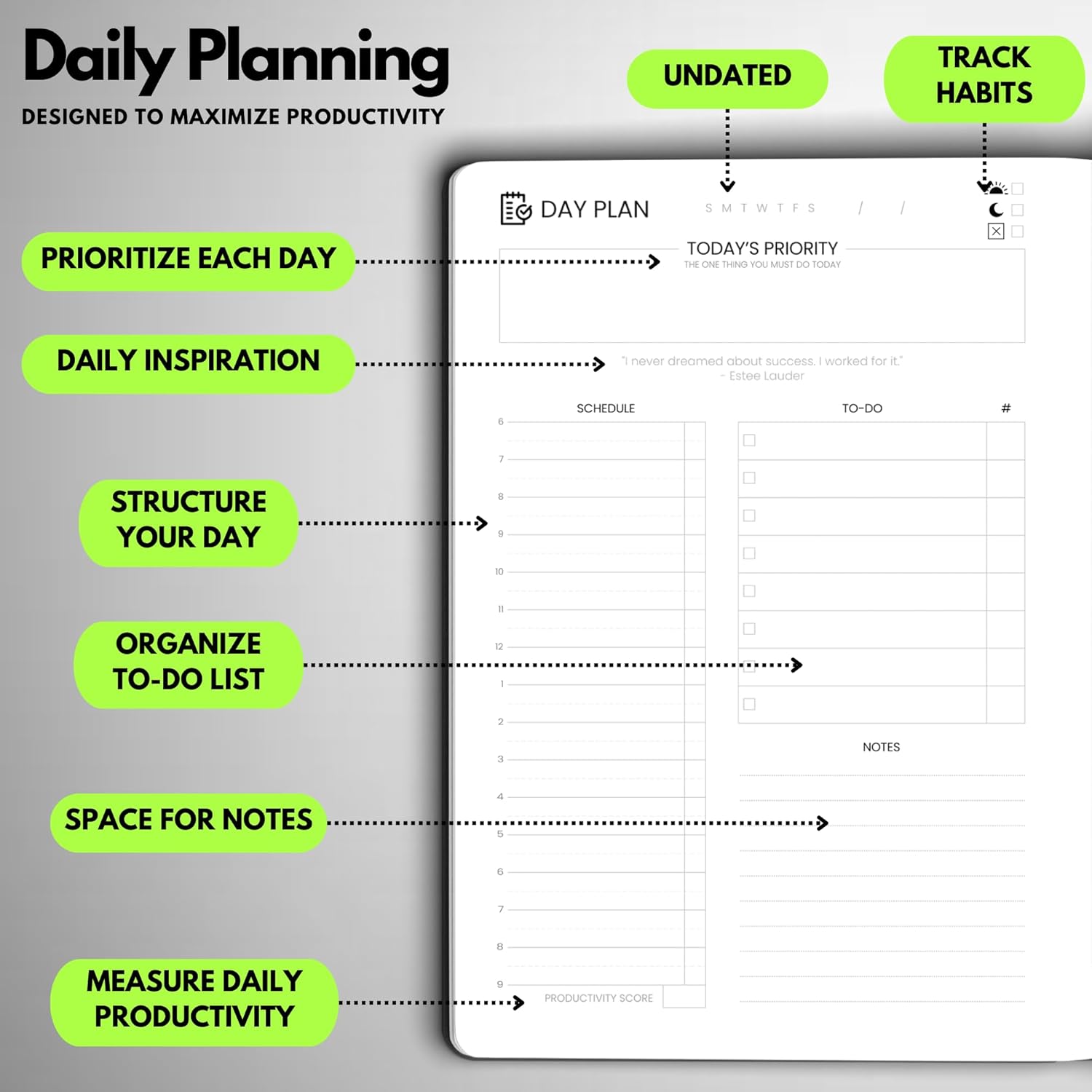 • START ANYTIME & STAY CONSISTENT – With 27 weeks of undated daily planning pages, plus weekly and monthly review sections. You can begin anytime, improve your time management and build a consistent planning habit on your own terms.