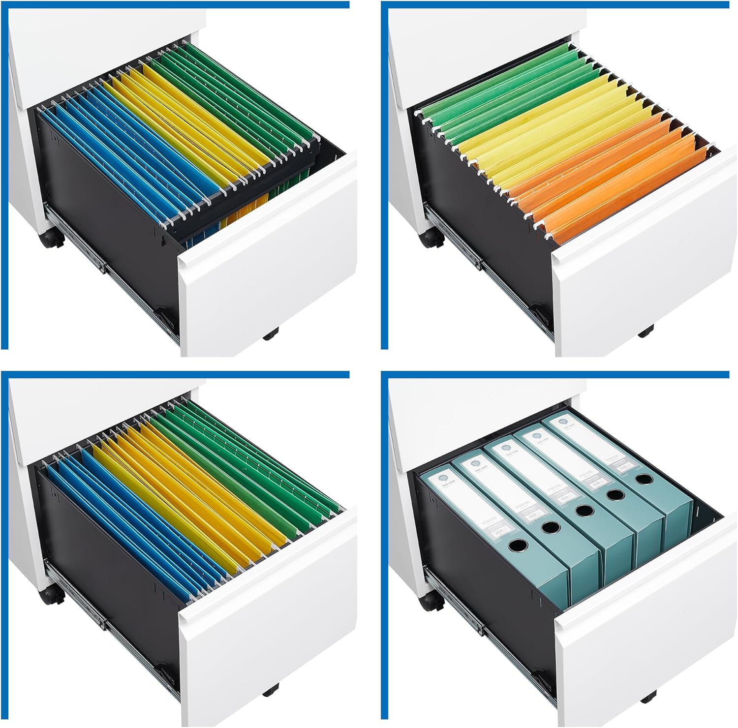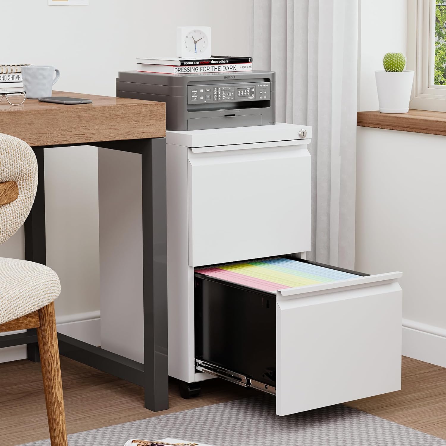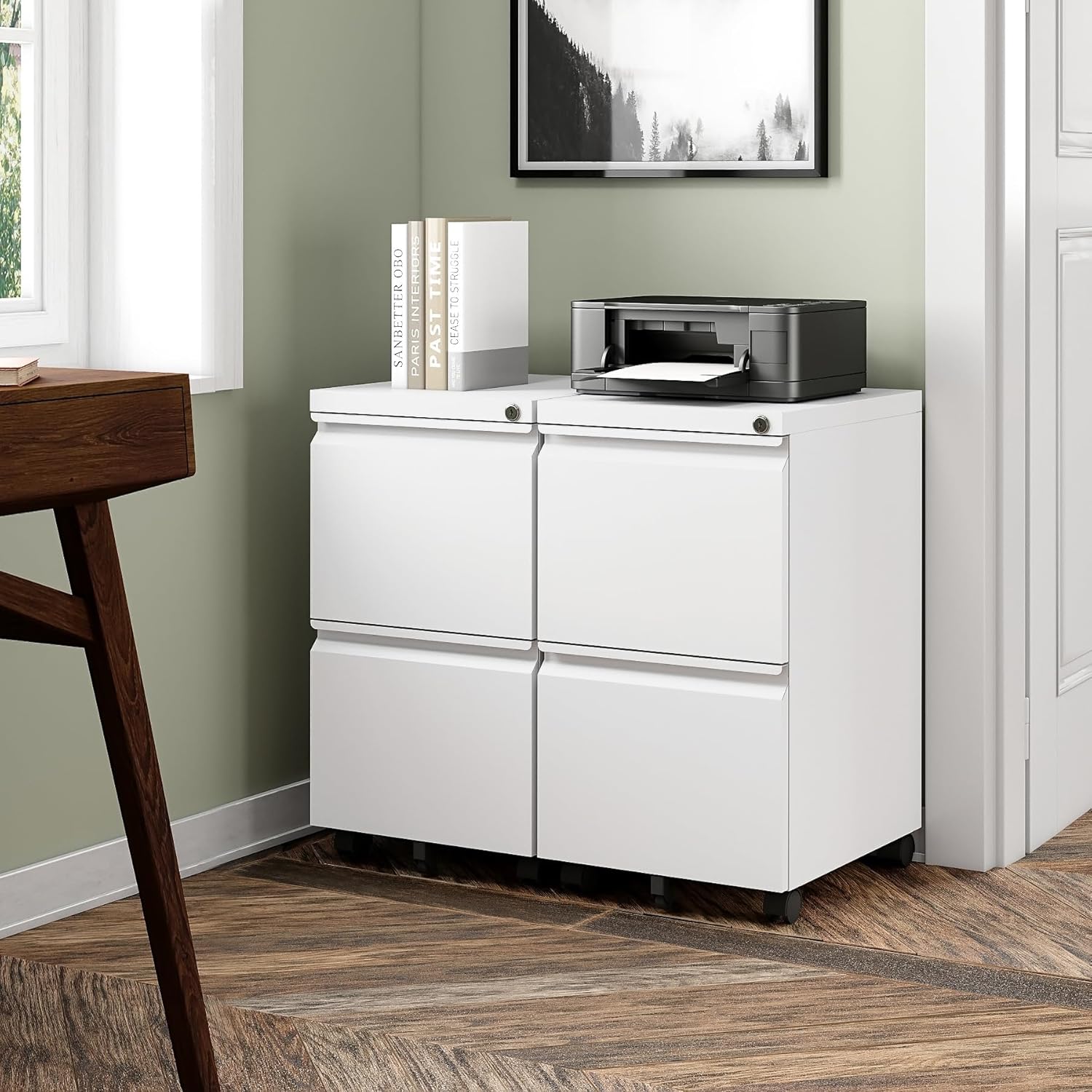 • Optimize your work space: The file cabinet adopts the structure of 2 drawers, 1+1 space combination. Small and large file cabinets can be organized and stored, making your office space more comfortable.