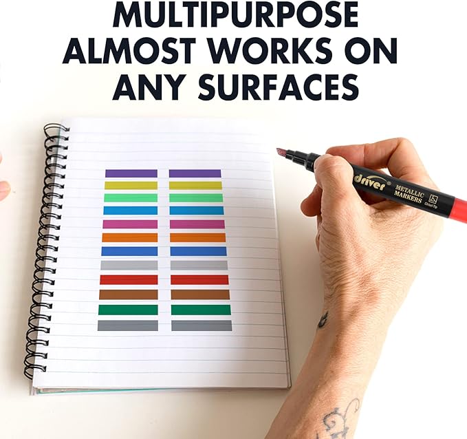 • 24 Bulk Set 12 Assorted Colors: 12pcs fine tip and 12pcs chisel tip markers. 2x orange, light blue, pink, deep green, gold, light green, white, red, yellow, deep blue, violet, silver