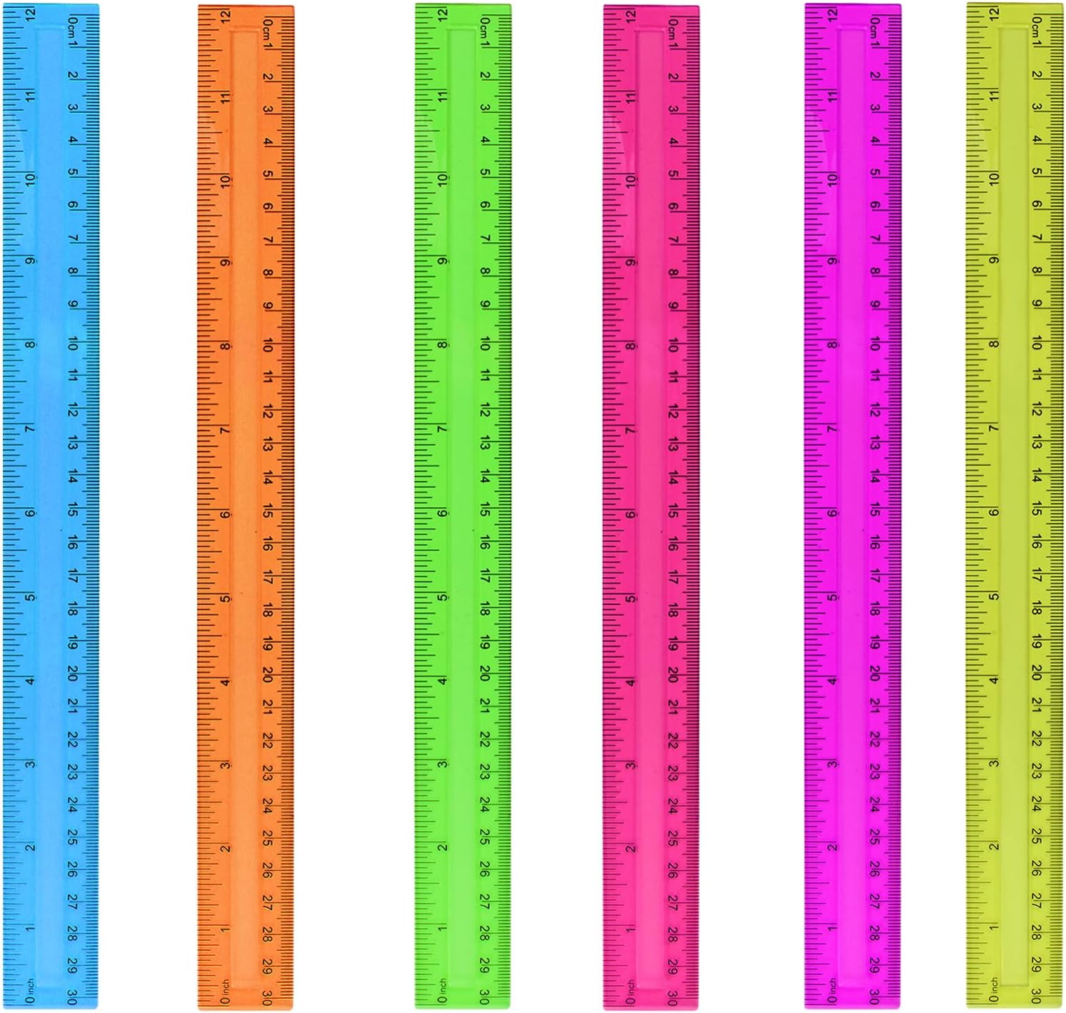 6PCS Clear Ruler, 12 Inch Plastic Rulers for School, Home, or Office, Clear Plastic Rulers, Assorted Colors.