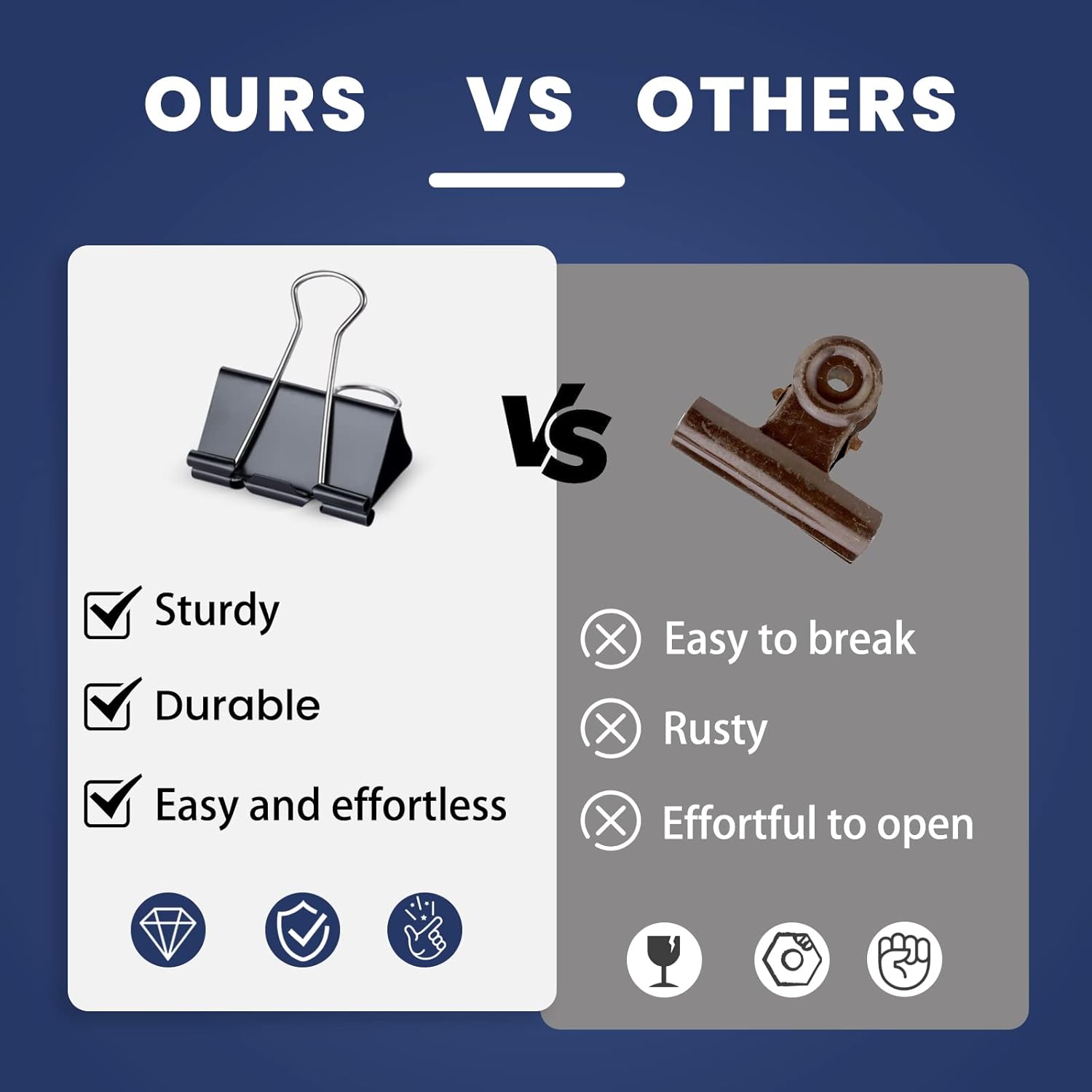 • WHAT YOU GET: Package included 72 clips ( 2 inches × 12pcs × 6 boxes ). Our large binder clips are perfect for everyday use. Order now and experience the convenience and reliability of our black clips.
