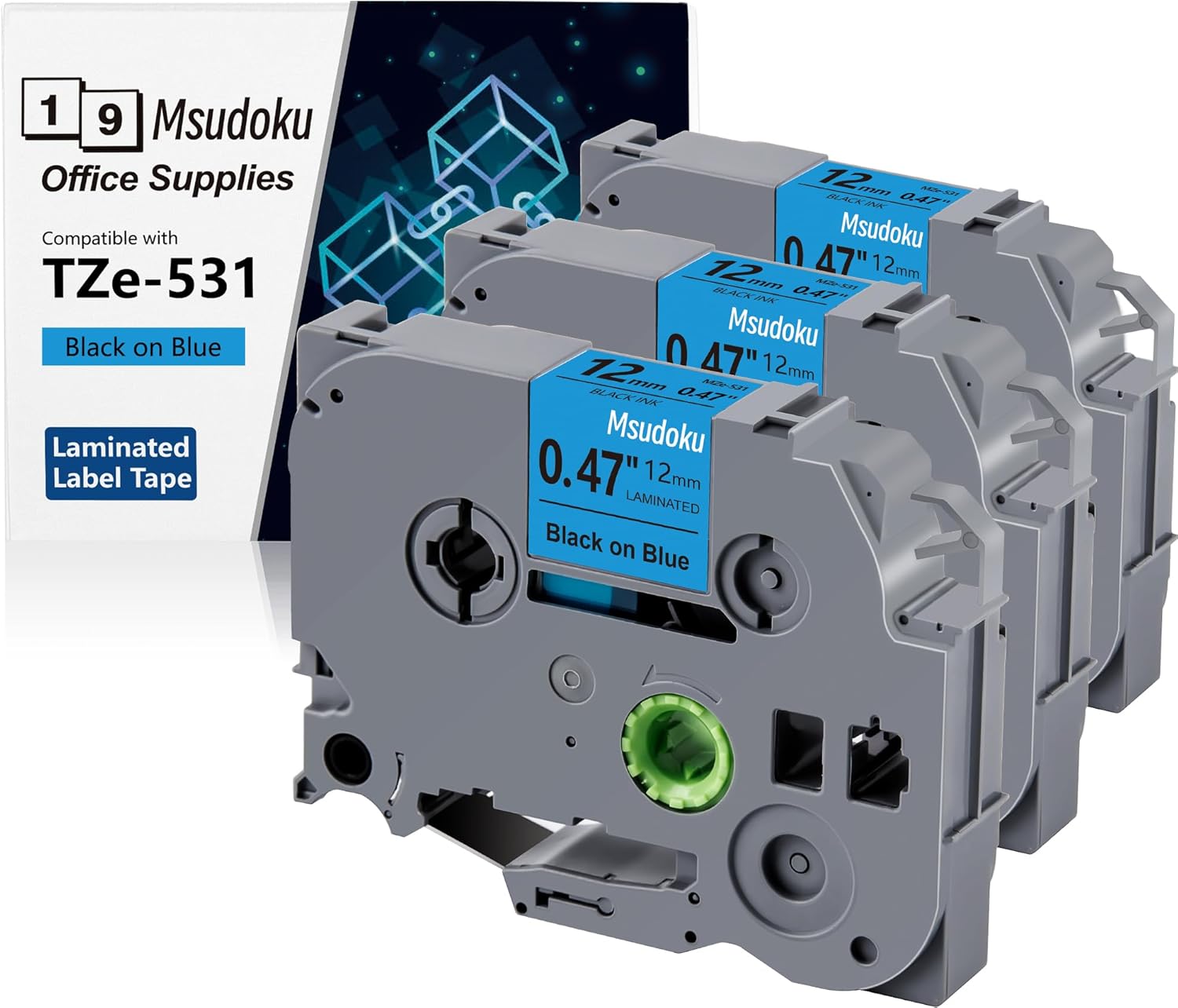 • These compatible for brother label maker tape 12mm 0.47 TZe-531 TZe531 have strong adhesive and no sticky residue when you remove it. The split back design of ptouch label tape 12mm blue tape is very easy to peel off