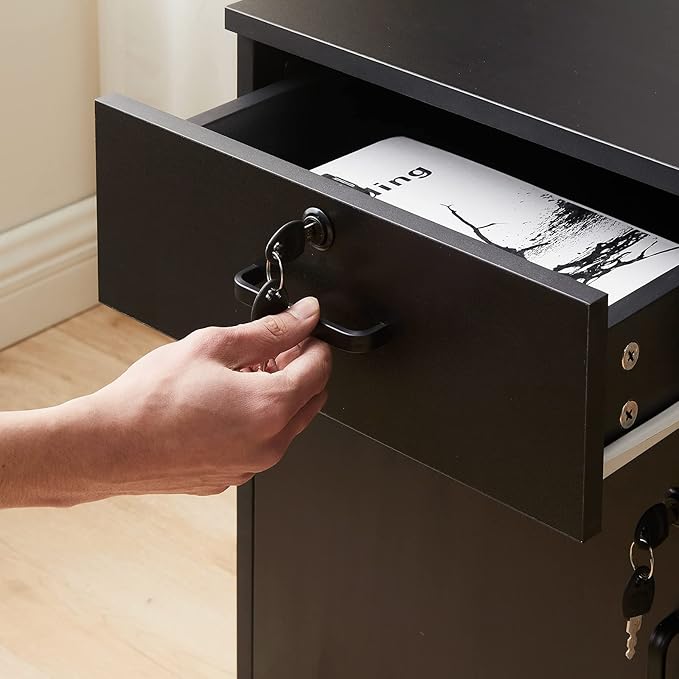 • 【Ample Storage Space】 With its large capacity storage design, this cabinet offers plenty of room for all your essentials. The drawers are perfect for small items, while the locker can accommodate A4 paper documents and important work folders. Say goodbye to clutter and hello to organized efficiency.(Not Have Hanging Rails)