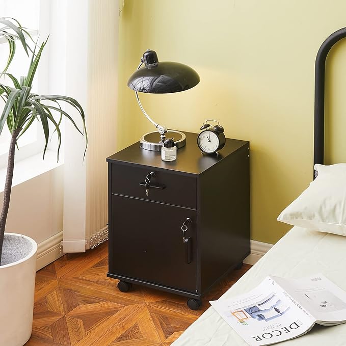 CLIPOP Rolling Storage Cabinet with Drawer, Home Office Cabinet with Lock, Under Desk Storage Cabinet for Home Office, Black