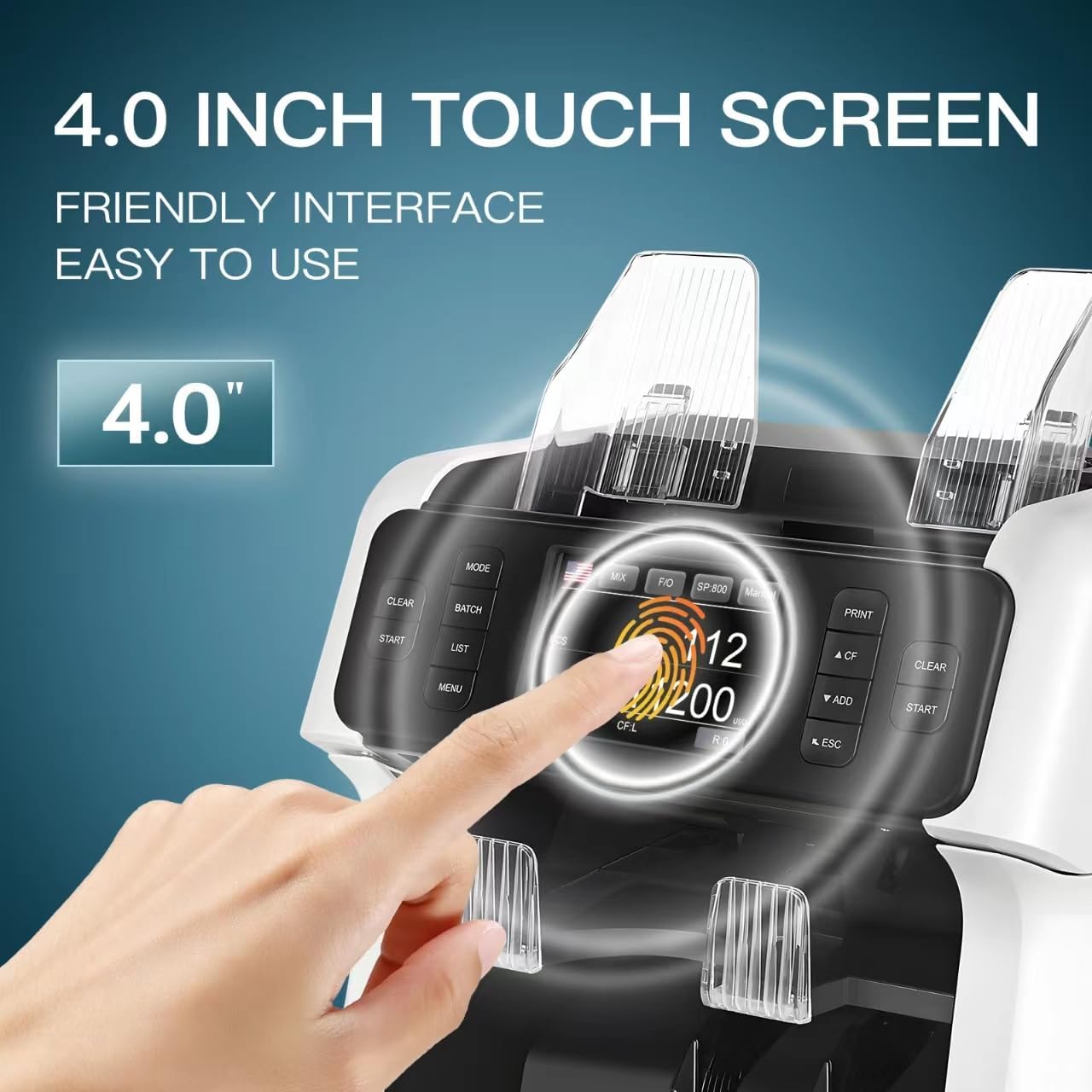 • Plug and Play: User-friendly 4 inch TFT touch screen with minimum key buttons, 3 speeds for selection 800/1000/1200 min/pcs, available to connect with PC or Nucoun's printer, easy to understand and boosts your counting efficiency with multi functions like MIX, MULTI, AUTO, SDC, CNT, VALUE BATCH, ADD. Ideal for banks, currency exchange shops, government and other small business owners