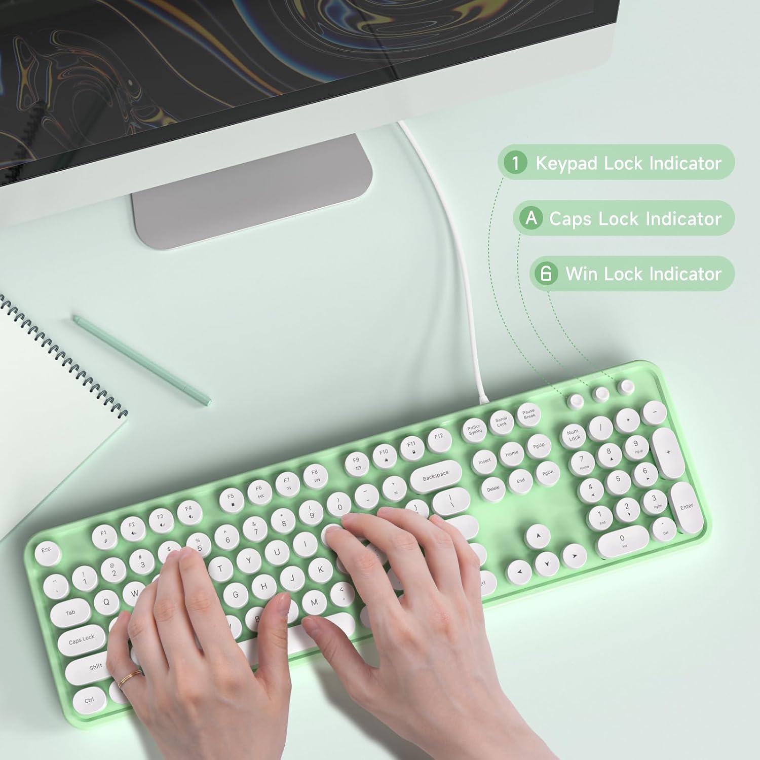 • 【 wired keyboard Keyboard】Cute round keycaps, crisp and sweet sound, perfect knocking feel, let you find the feeling of a retro typewriter. And it’s detachable, making the keyboard easy to clean.