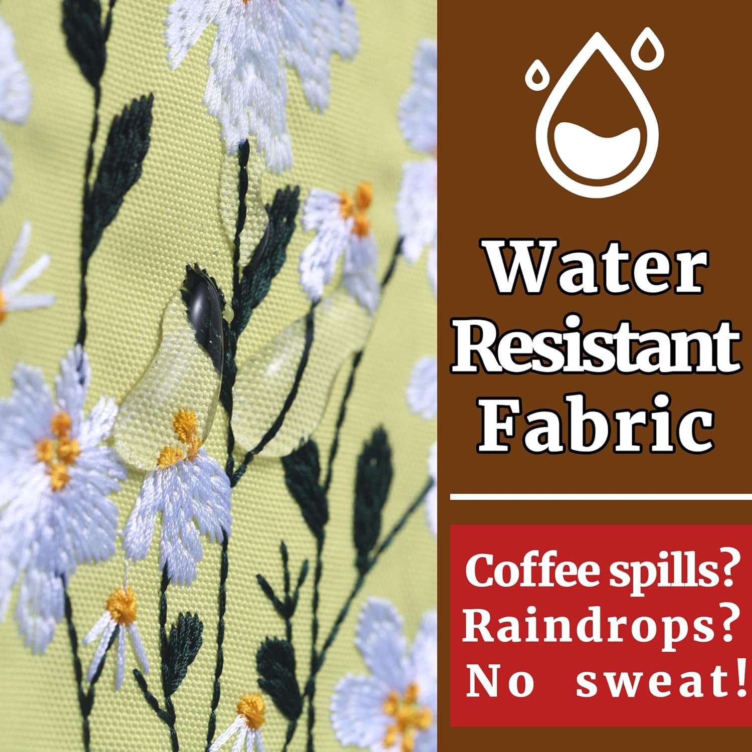 LParkin Daisy Flower Embroidery Book Sleeve with Zipper for Readers Protector Cover Gift for Book Lovers, 11x 8.5 Inch Washable Fabric, Daisy White(White)