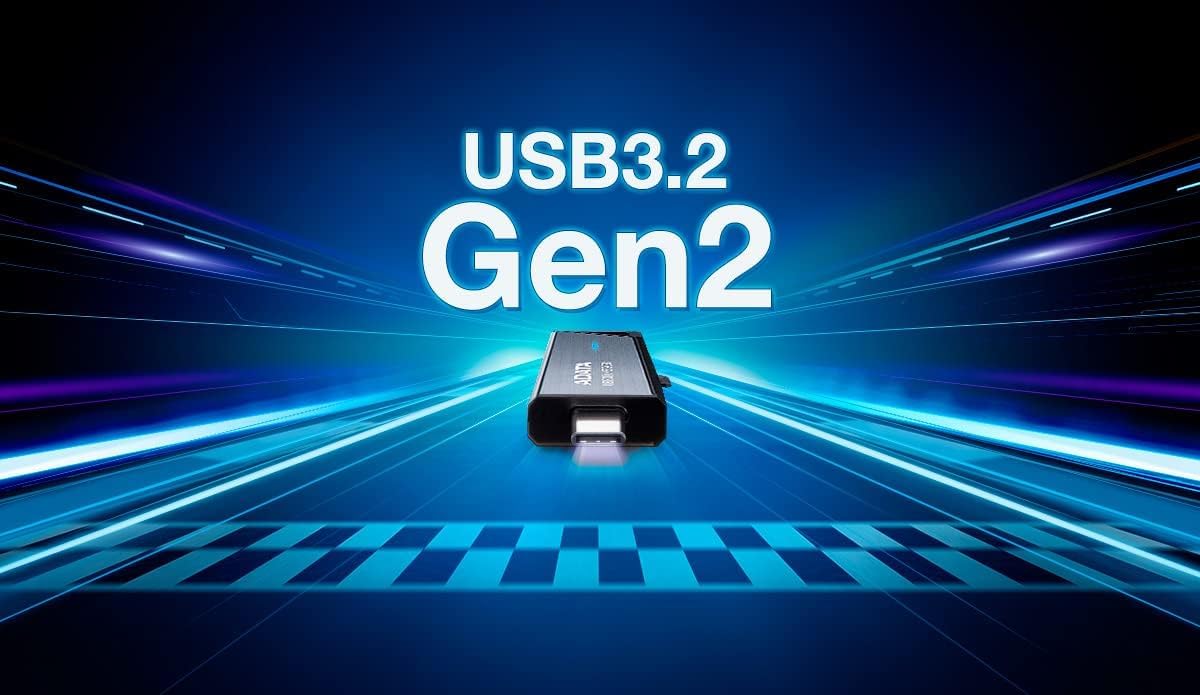 • USB 3.2 Gen2 and read and write speeds of up to 1,000MB/s