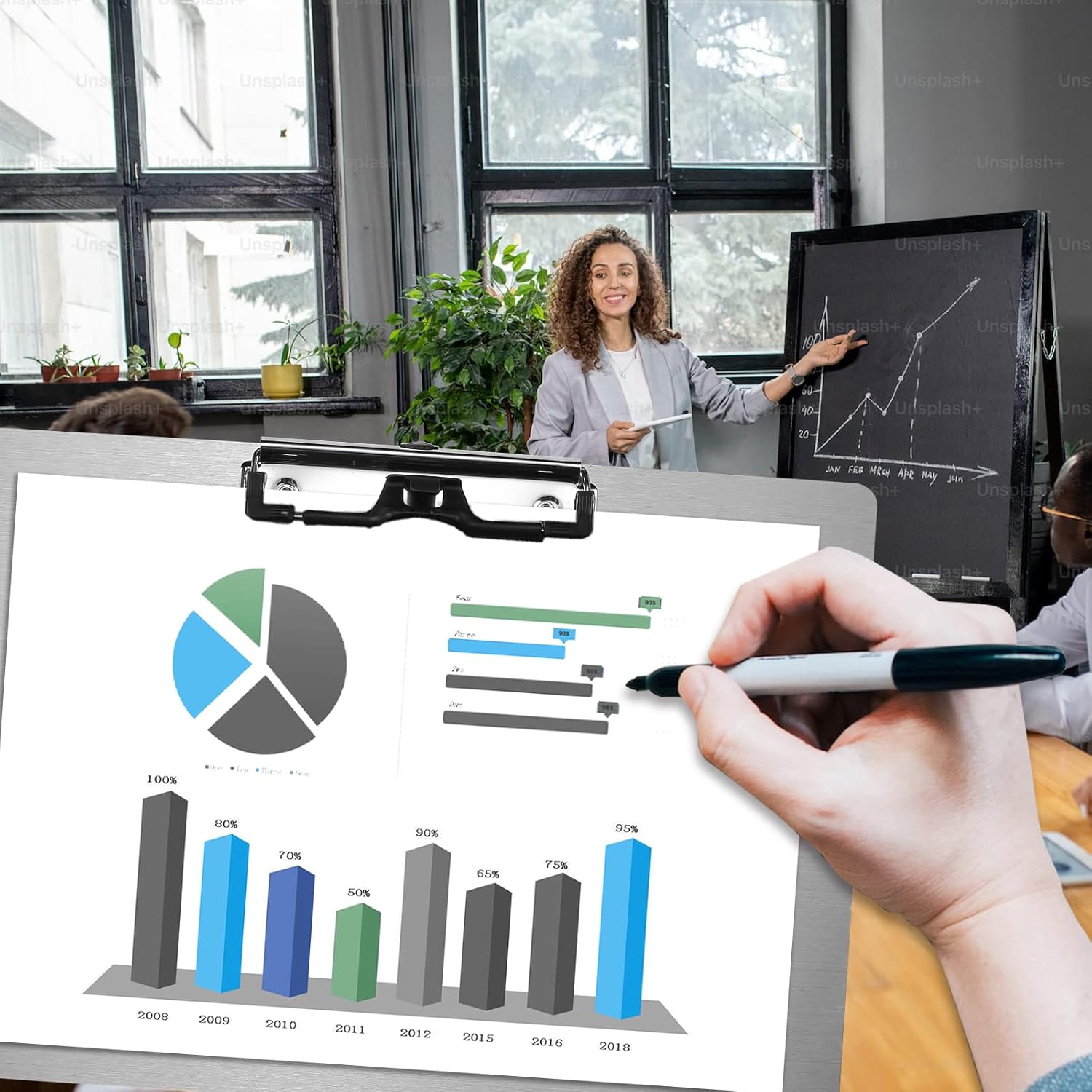 • - Large Capacity Spring Clip: Can hold A4 sized paper and acts as a mini whiteboard(excluding whiteboard pens).