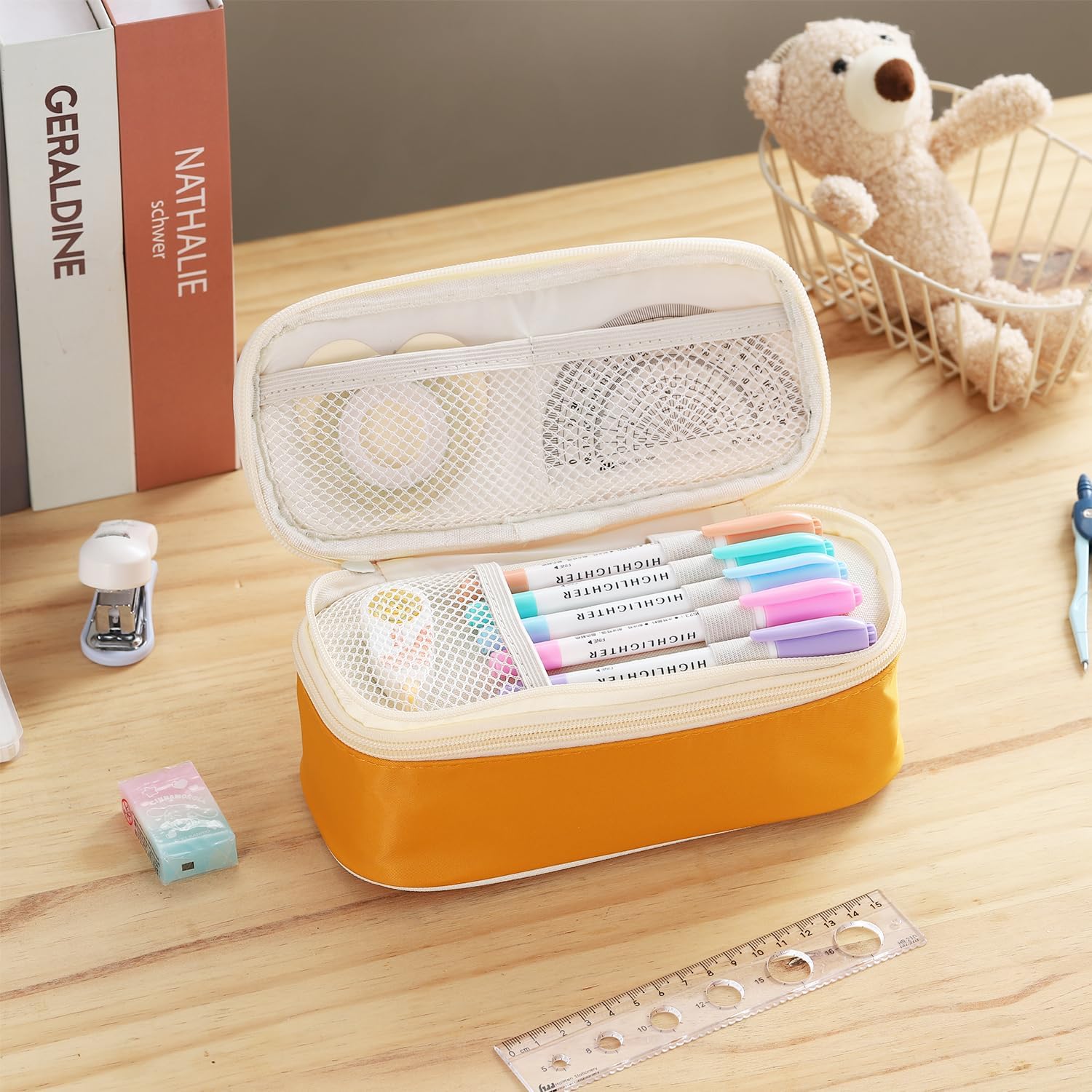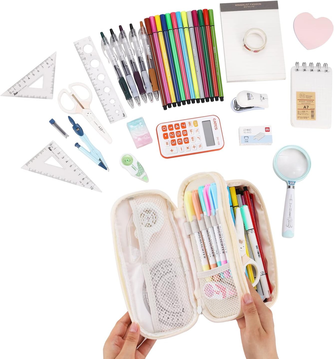 • Large Capacity: The Dimensions is 9.06'' x 4.33'' x 3.54'' This pencil case allows up to 80-100 pens/pencils, 20 cm ruler, pencil sharpener and other stationery gadgets.