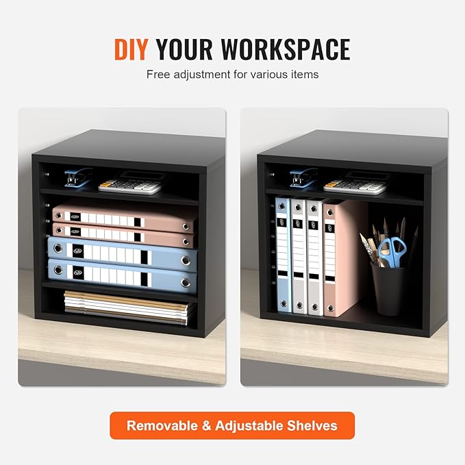 • Flexible Storage: With compartment sizes of 12.6" x11.1" x2.2", our wood file organizer can hold over 500 A4 paper sheets in each compartment. Plus, you can adjust or remove shelves to make space for taller items. Customize the layout of your storage cabinet to suits your specific needs.