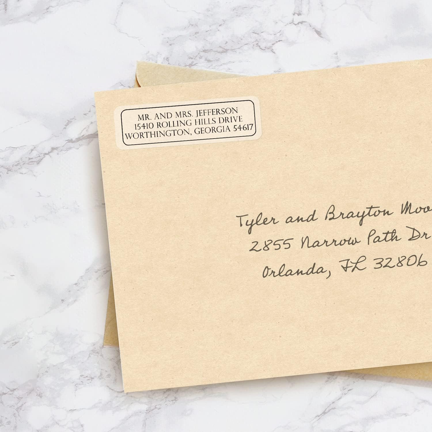 • Perfect Size: These classic address label designs measure approximately 2½" x ¾". Simple design for any wedding theme, trendy font choices brings charm to this timeless address label. Clean, legible address font surrounded by a simple black outline.