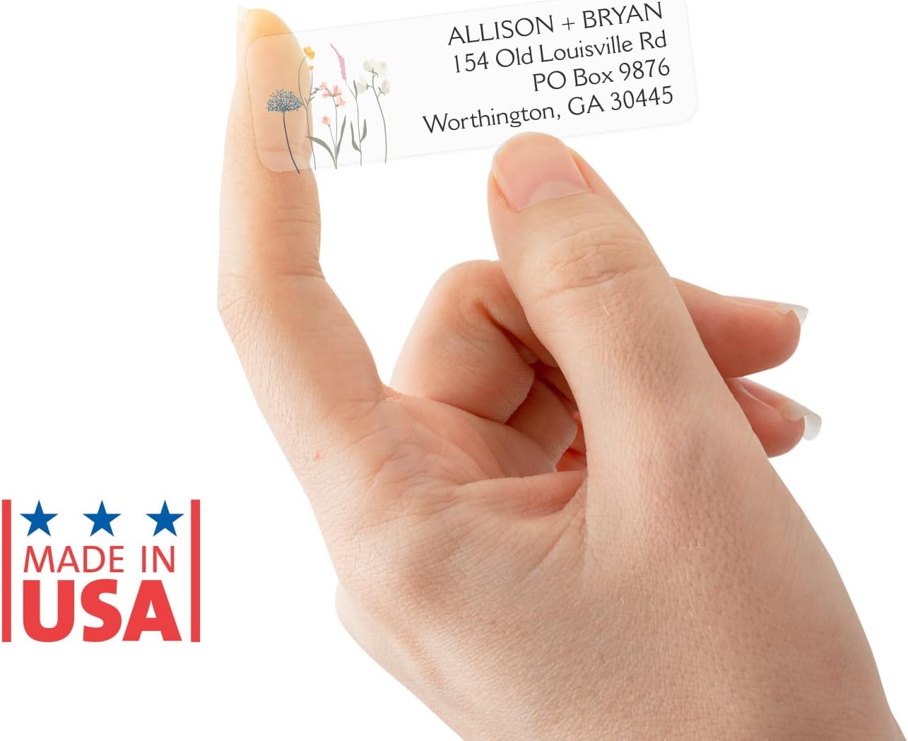 • Perfect Size: These artsy address label designs measure approximately 2½" x ¾". Simple design for any wedding theme, trendy font choices brings charm to this timeless address label. Multicolor wildflower design complemented by clean, legible address font.