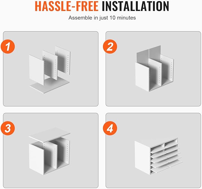 • Assemble in No Time: Our literature organizer sorter is incredibly easy to install, thanks to its simple panel design. With the included assembly instructions, you'll be guided through every step of the process, making it a breeze to complete the installation in just 10 minutes!