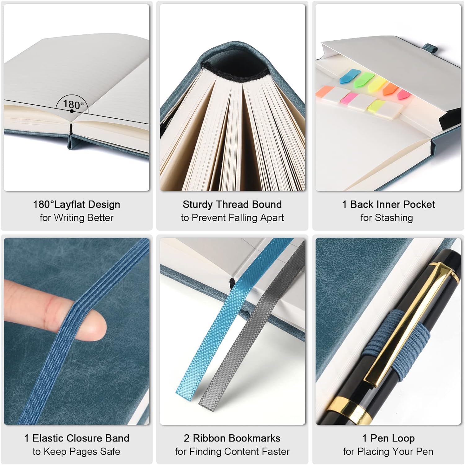• 【User-Centered Design】5 Contents Pages for logging more entries; 2 Ribbon bookmarks for quick content reference; 1 Elastic closure band for secure page keeping; 1 Pen holder to keep your pen always handy; 1 Back Inner pocket for storing notes and small items; 8 Sheets of perforated page for versatile use.