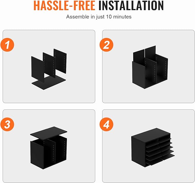 • Assemble in No Time: Our literature organizer sorter is incredibly easy to install, thanks to its simple panel design. With the included assembly instructions, you'll be guided through every step of the process, making it a breeze to complete the installation in just 10 minutes!
