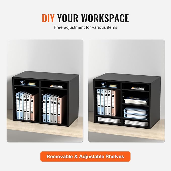 VEVOR Literature Organizers, 12 Compartments Office Mailbox with Adjustable Shelves,Wood Literature sorter 20.4x12x16.1 inches for Office, Home, Classroom, Mailrooms Organization, EPA Certified Black