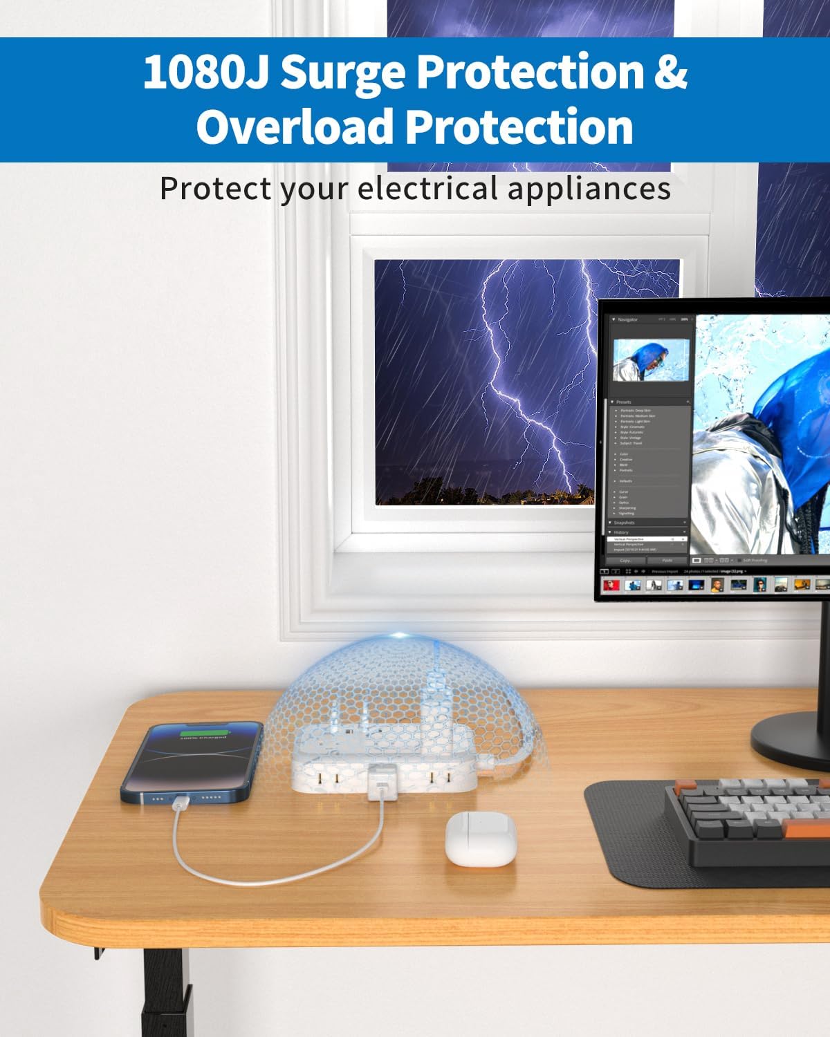 • 【Reliable Surge Protection & Overload Protection】- The surge protector with overload protection protects your electrical appliances from lighting, surges, or spikes. The minimum energy-absorbing capacity of 1080 Joules. The flat extension cord with built-in multiple security modules safeguards your electronic devices from overload and over-current/over-charge/short circuit/over-heated.