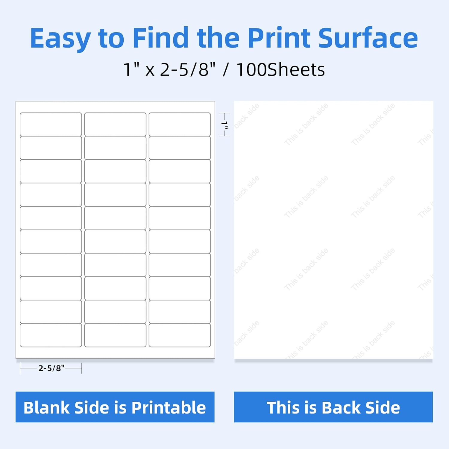 • Labels Size: Label Size: 1" x 2-5/8". Total 500 Sheets = 15000 Labels, Color: matte white.