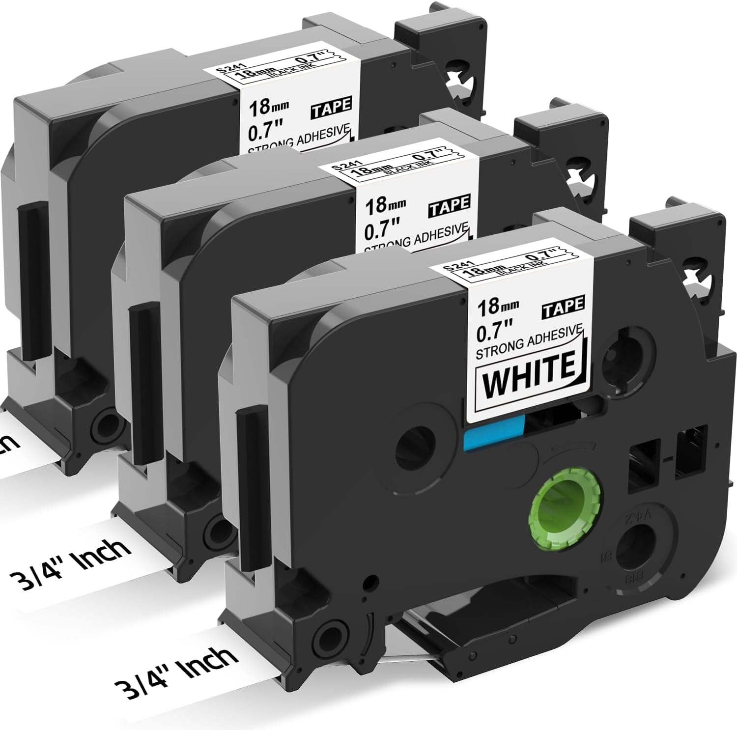 • Color: Black on White, 3-pack replacement for Brother TZE-S241 TZES141 18mm extra strength adhesive tape. Size: 18mm x 8m(3/4 inch x 26.2 ft)