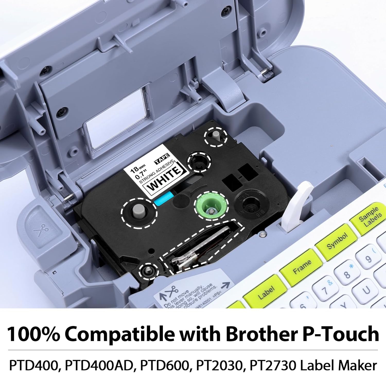• Compatible with Brother p-touch label maker that using 18mm 3/4" extra-strength adhesive laminated tape, such as PT-D400 PT-D600 PT-D410 PTD400AD PT-D610BT PT-P900W PT-P950NW PT-P700 PTD600VP PT-P750W PT-P710BT PT1700 PT1750 PT1880 PT1890 PT1900 PT2040 PT2300 PT2700 PT2730, etc.