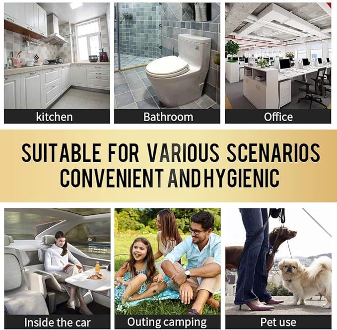 • MULTIFUNCTION HANDLES TRASH BAGS: Perfect small plastic waste bags for office, kitchen,bathroom, bedroom, living room,baby diapers,car, cleaning pet's litter.12 rolls white color garbage bags . You can choose different colors of garbage can lining according to different household garbage