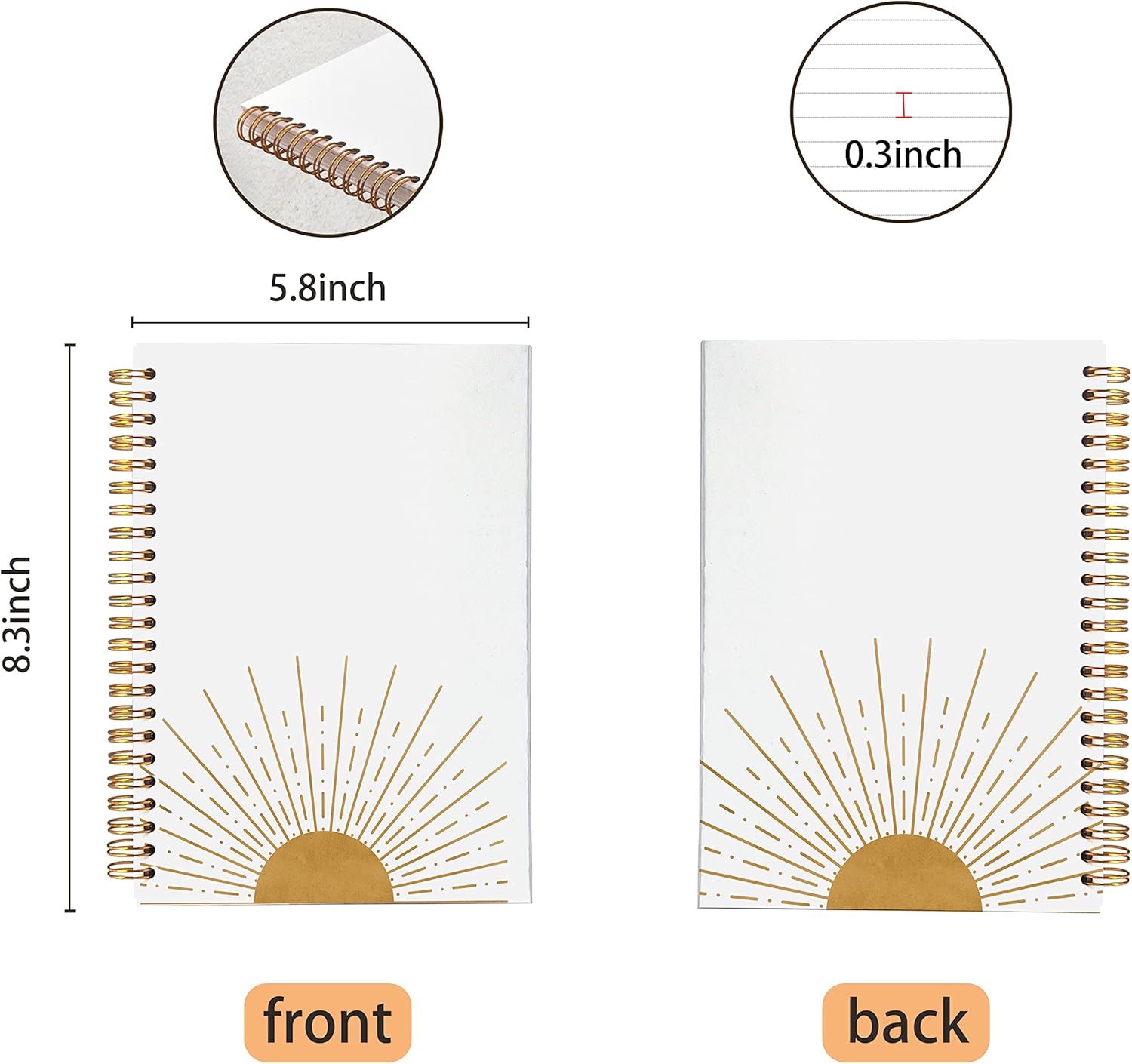 VNWEK Abstract Boho Sun Sunrise Sunset Sunshine Spiral Notebook Journal 5.5×8.3 Inch,Boho Mid-Century Modern Art Lined Hardcover Spiral Notebook for Work Notes Journaling,Boho Gifts for Women Girls