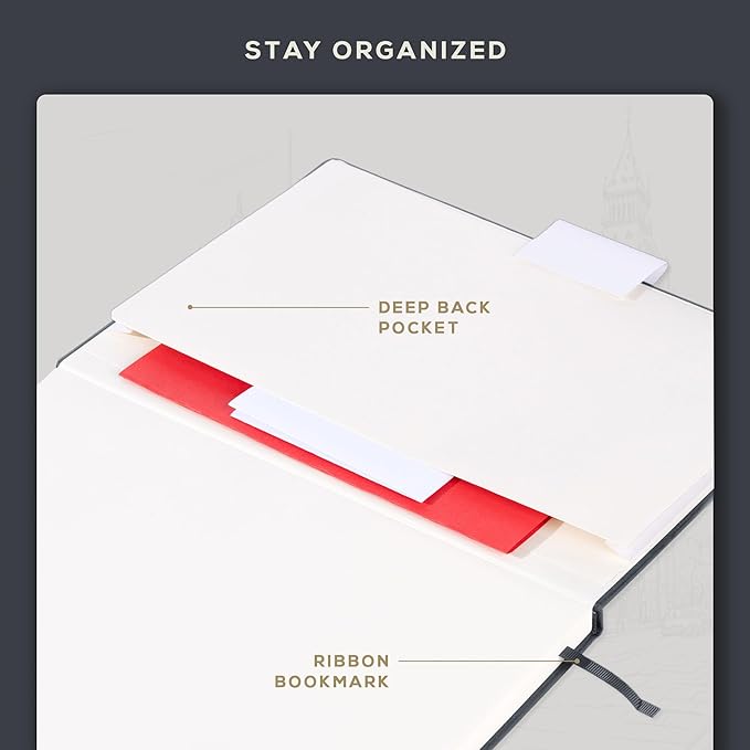 • Enjoy Bleed-Free Writing - This hardcover professional notebook uses thick pages that resist ink bleed for fountain pen users. Every word remains pristine and legible, no matter your pen choice!