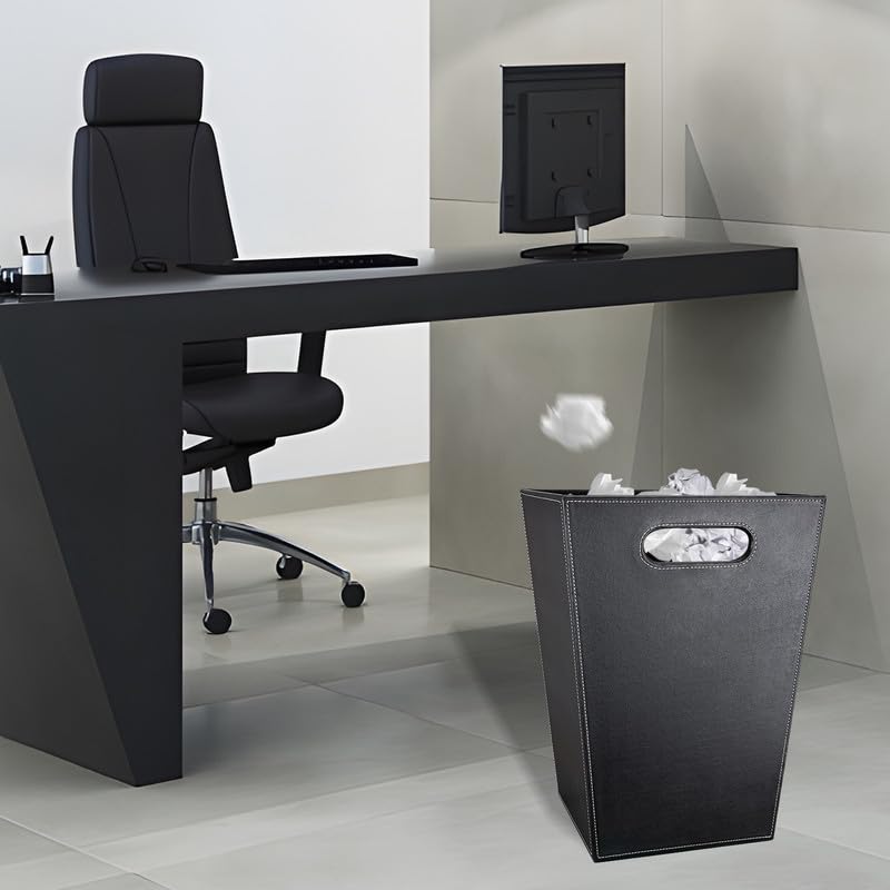• Easy to Clean: waste basket for office is simply wipe the leather surface with a damp cloth for quick and effortless cleaning. Our wastebasket is professional design for small trash, recycling cans, paper waste and junk mail for the office, bathroom or or garbage in the kitchen.