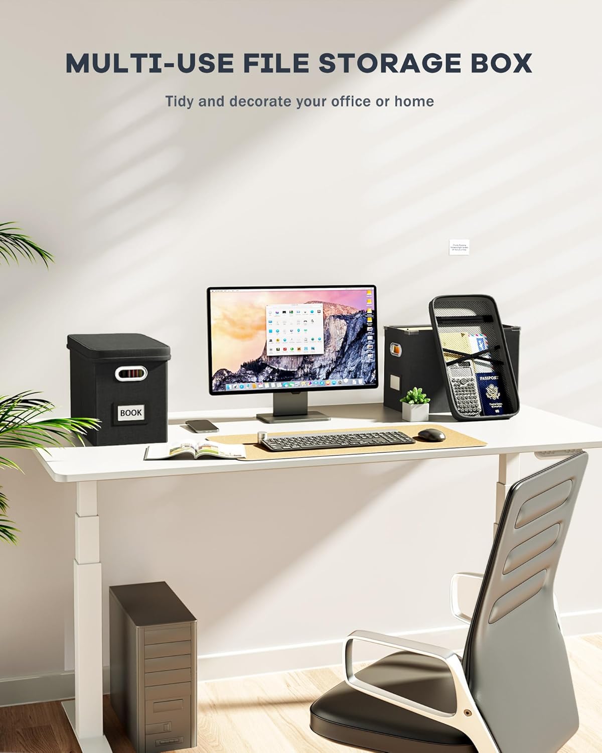 • 【Sturdy & Stackable】Portable storage box is made of well-made linen fabrics and durable material, with good support and bearing capacity, and the box top can withstand 100 lbs. The document boxes can be stacked when in use, or folded for easier storage when not in use.